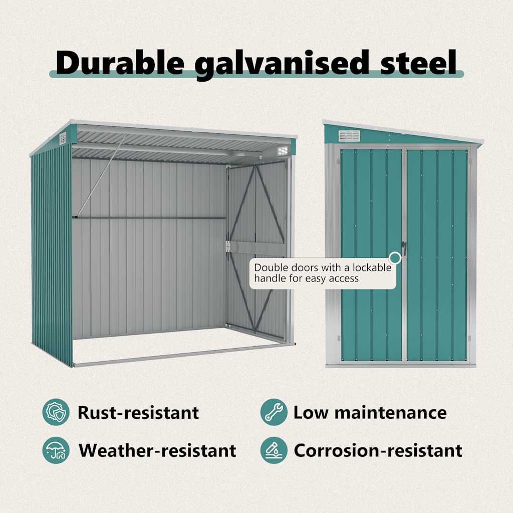 vidaXL vidaXL Anbauschuppen Grün 118x194x178 cm Verzinkter Stahl