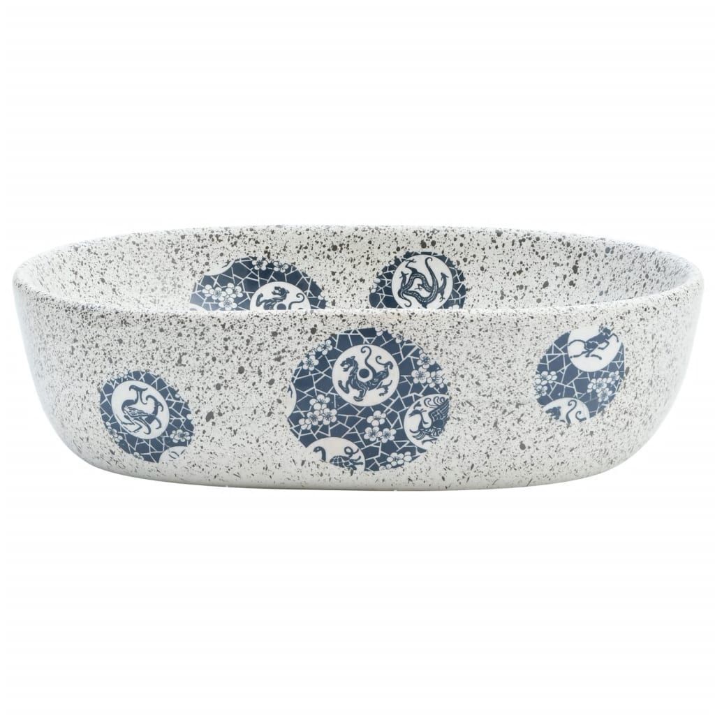 vidaXL vidaXL Aufsatzwaschbecken Grau und Blau Oval 47x33x13 cm Keramik