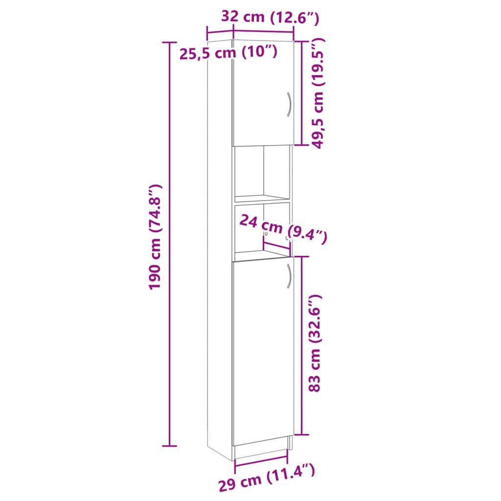 vidaXL vidaXL Badezimmerschrank Sonoma-Eiche 32x25,5x190 cm Holzwerkstoff