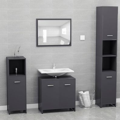 • vidaXL Badmöbel-Set Hochglanz-Grau Holzwerkstoff