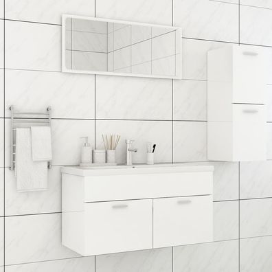 vidaXL Badmöbel-Set Hochglanz-Weiß Holzwerkstoff