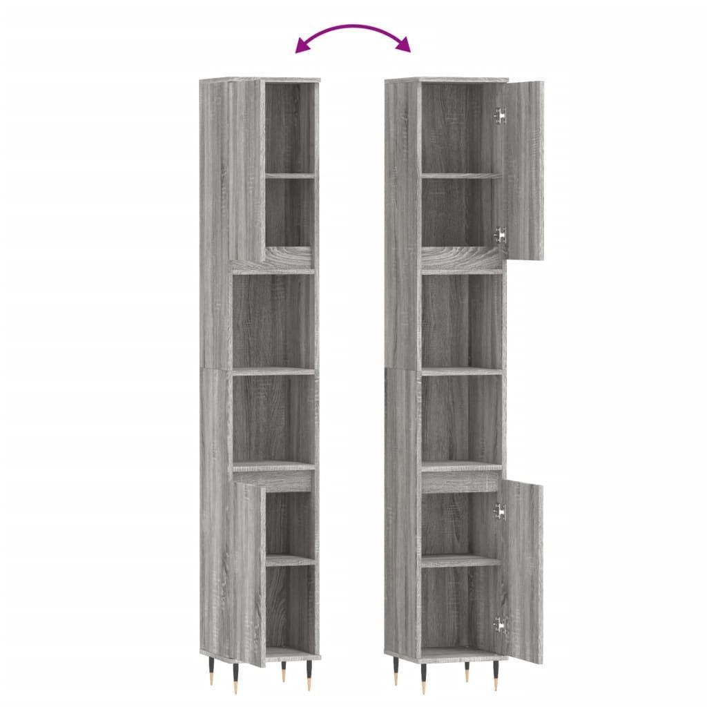 vidaXL vidaXL Badschrank Grau Sonoma 30x30x190 cm Holzwerkstoff