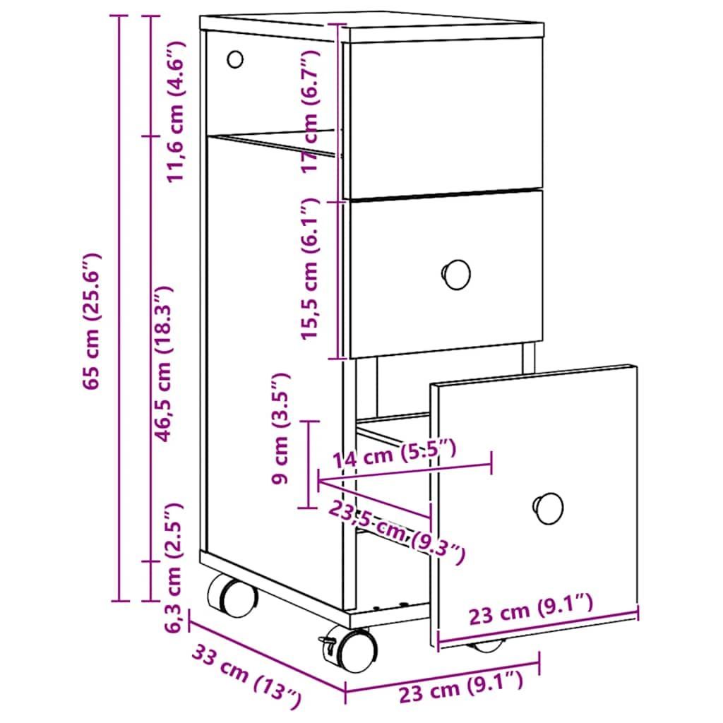 vidaXL vidaXL Badschrank Schmal mit Rollen Artisan-Eiche Holzwerkstoff