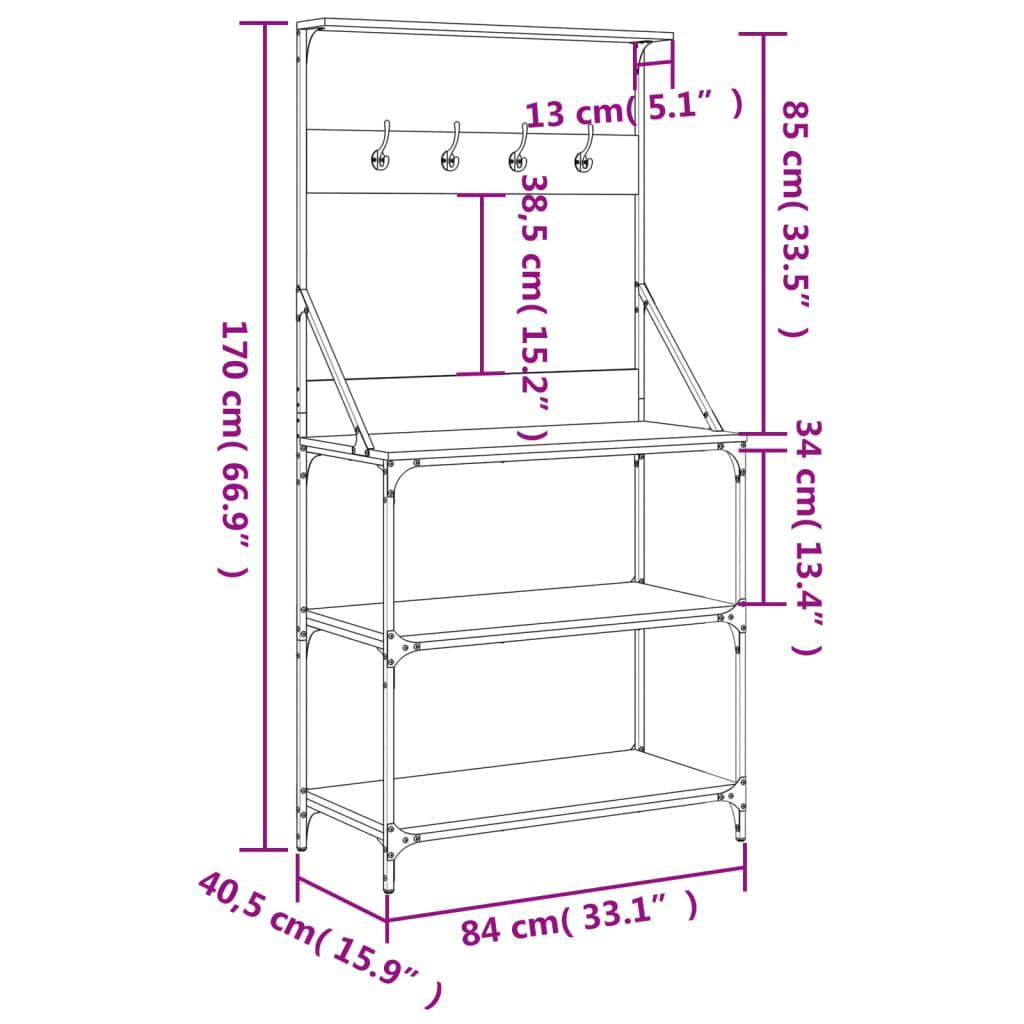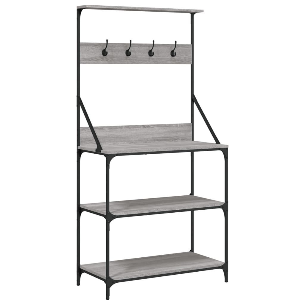 vidaXL vidaXL Bäckerregal mit Haken 4 Böden Grau Sonoma Holzwerkstoff