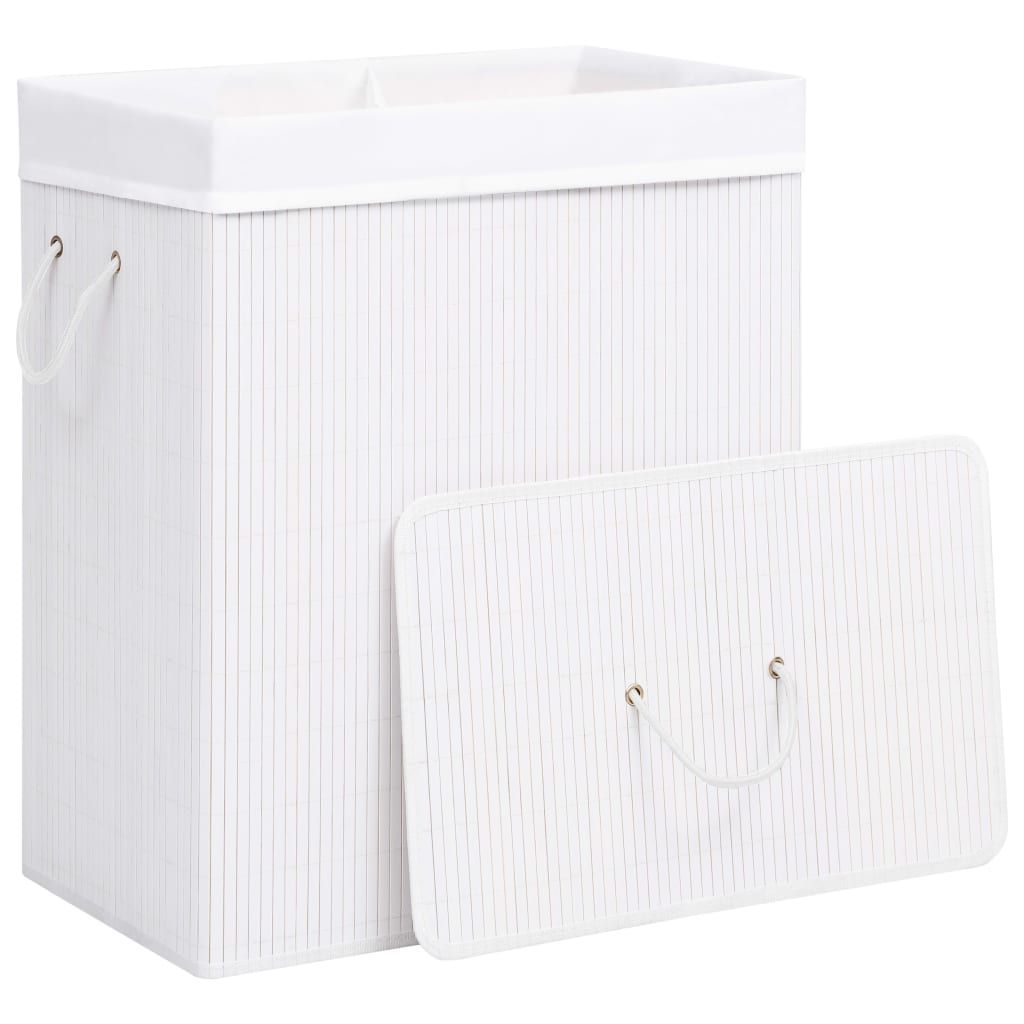 vidaXL vidaXL Bambus-Wäschekorb mit 2 Fächern Weiß 100 L