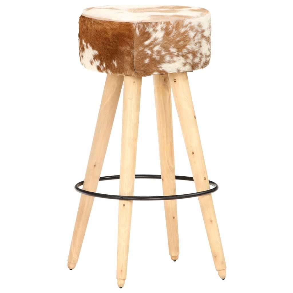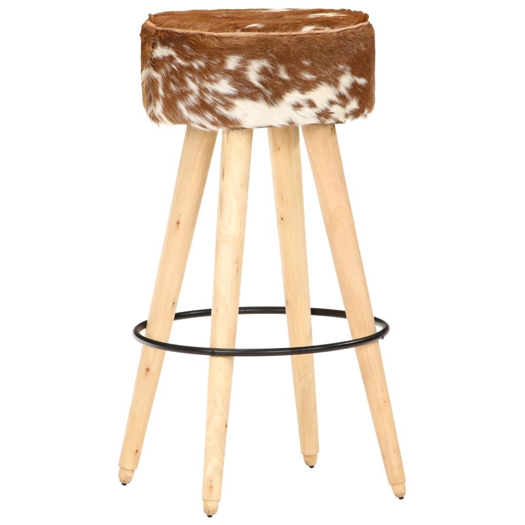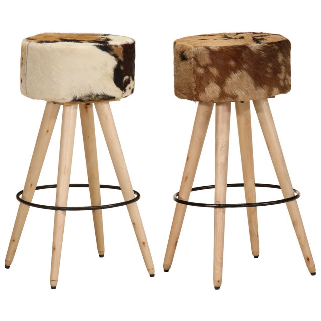 vidaXL vidaXL Barhocker 2 Stk. Braun Raues Mangoholz und Echtleder