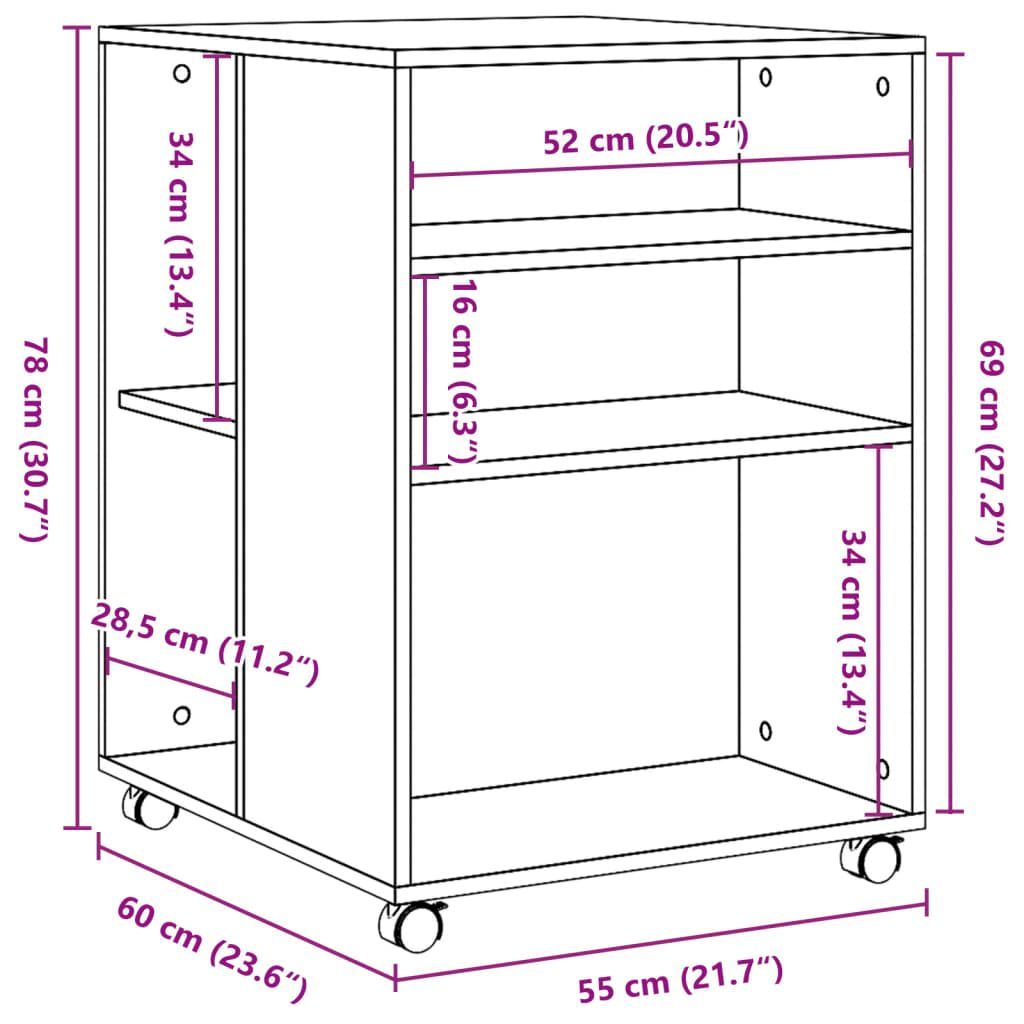 vidaXL vidaXL Beistelltisch mit Rollen Schwarz 55x60x78 cm Holzwerkstoff