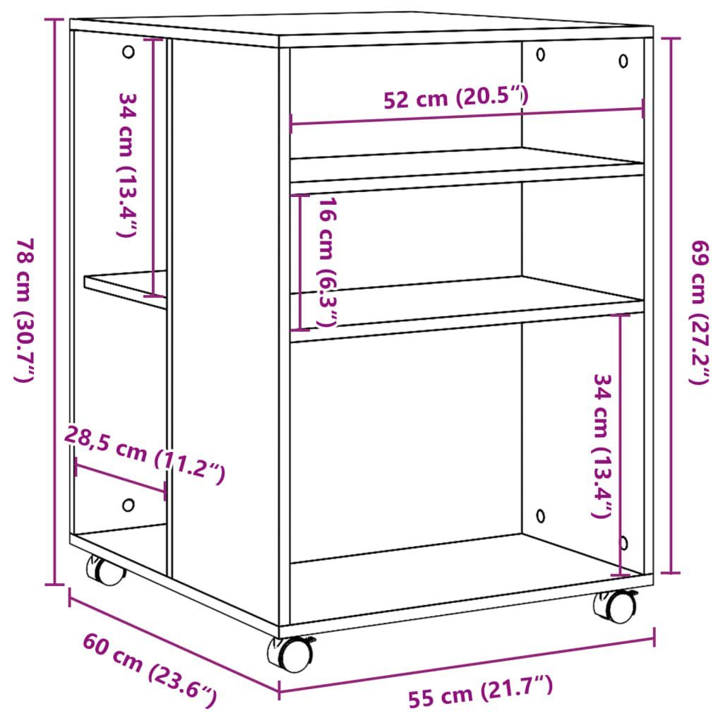 vidaXL vidaXL Beistelltisch mit Rollen Sonoma-Eiche 55x60x78 cm Holzwerkstoff