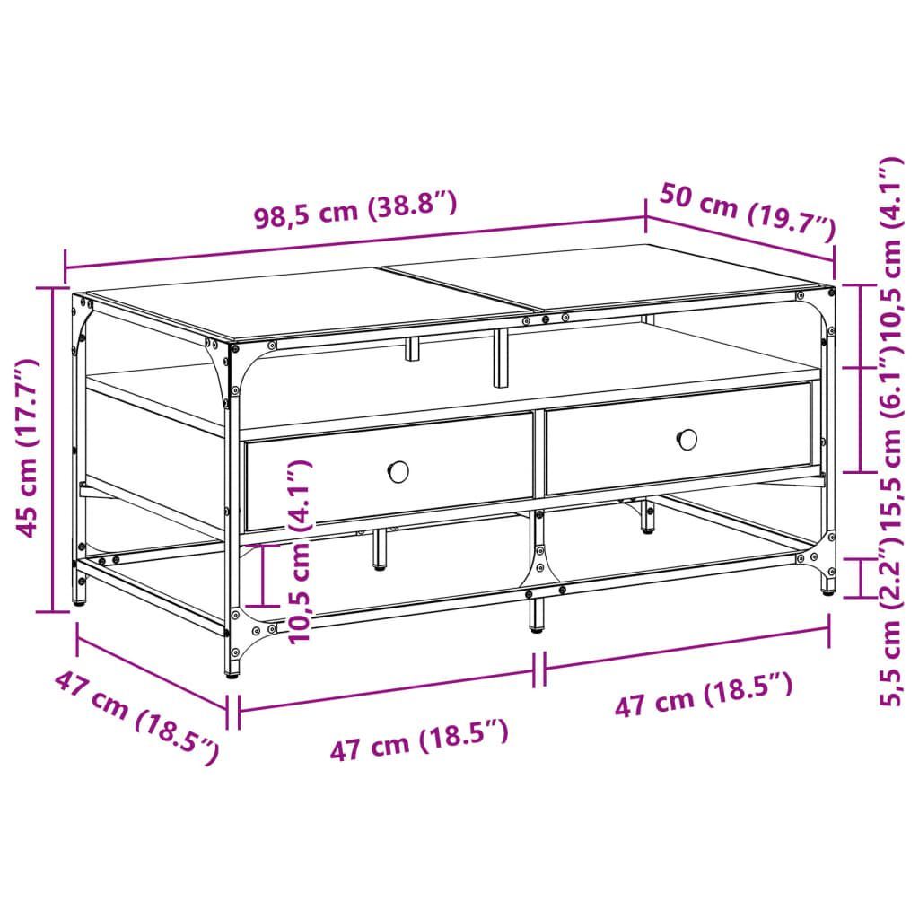 vidaXL vidaXL Couchtisch mit Glasplatte Grau Sonoma 98,5x50x45 cm Stahl