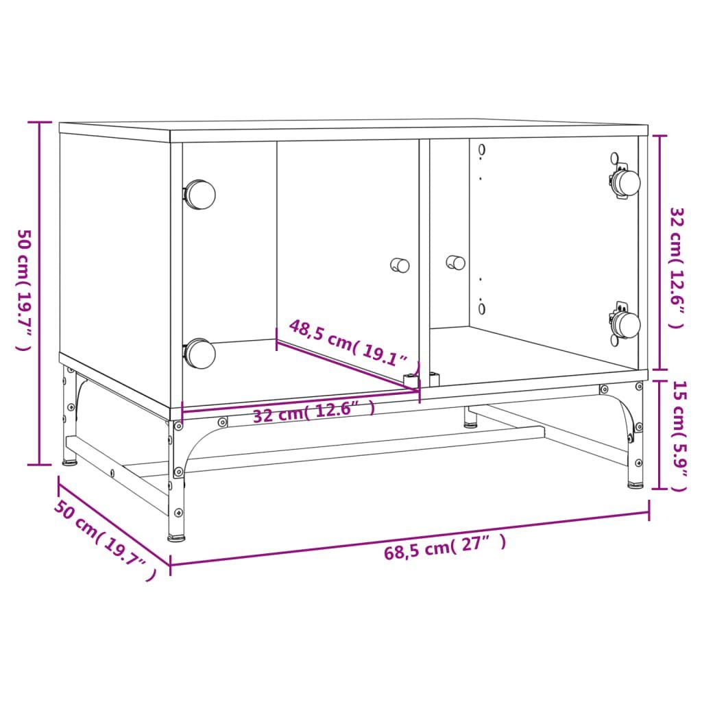 vidaXL vidaXL Couchtisch mit Glastüren Grau Sonoma 68,5x50x50 cm