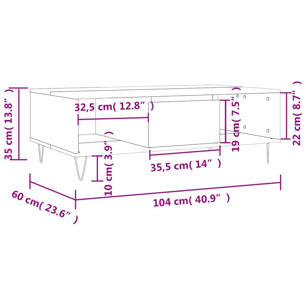 vidaXL vidaXL Couchtisch Räuchereiche 104x60x35 cm Holzwerkstoff