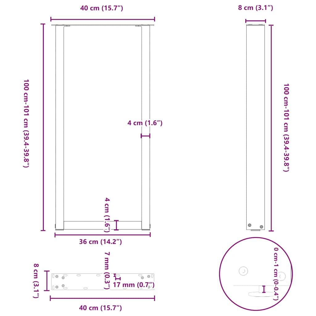 vidaXL vidaXL Couchtischbeine U-Form 2 Stk. Schwarz 40x(100-101) cm Stahl