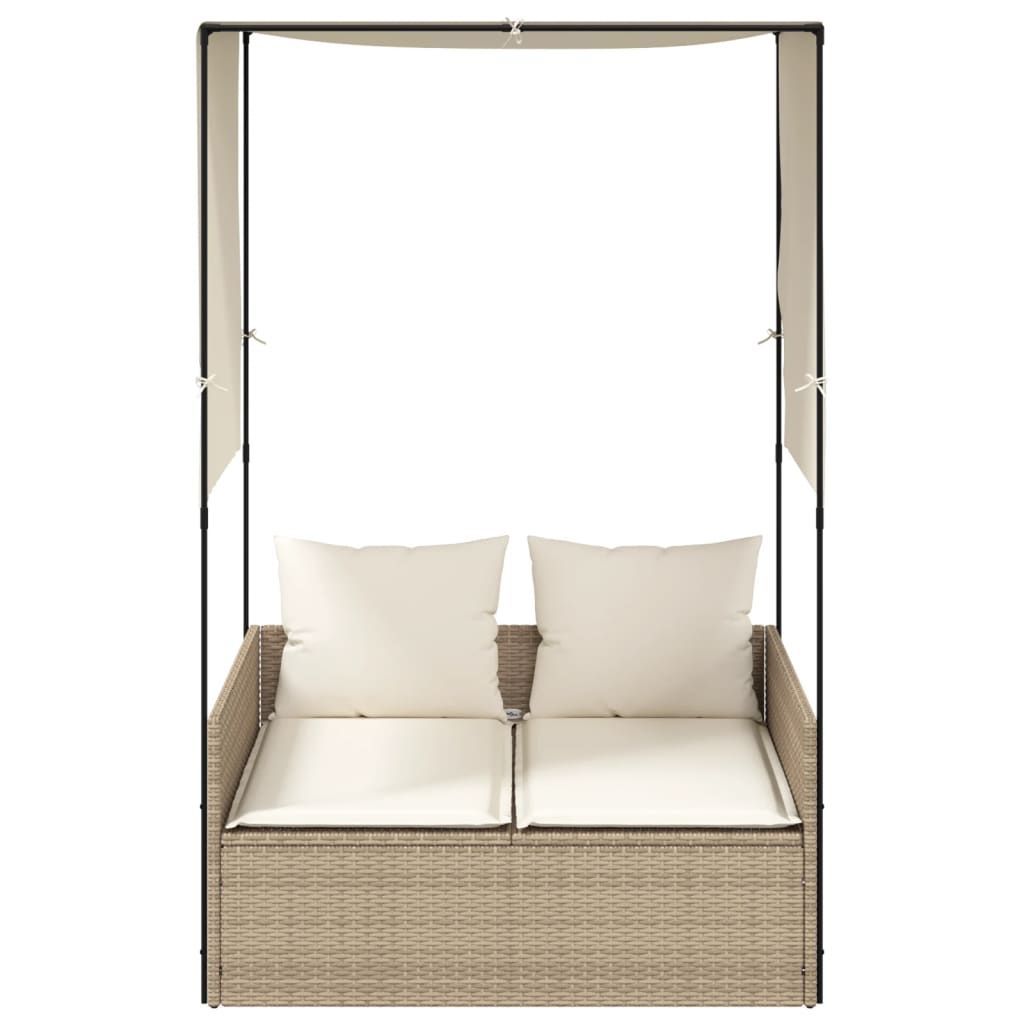 vidaXL vidaXL Doppel-Sonnenliege mit Dach und Vorhängen Beige Poly Rattan