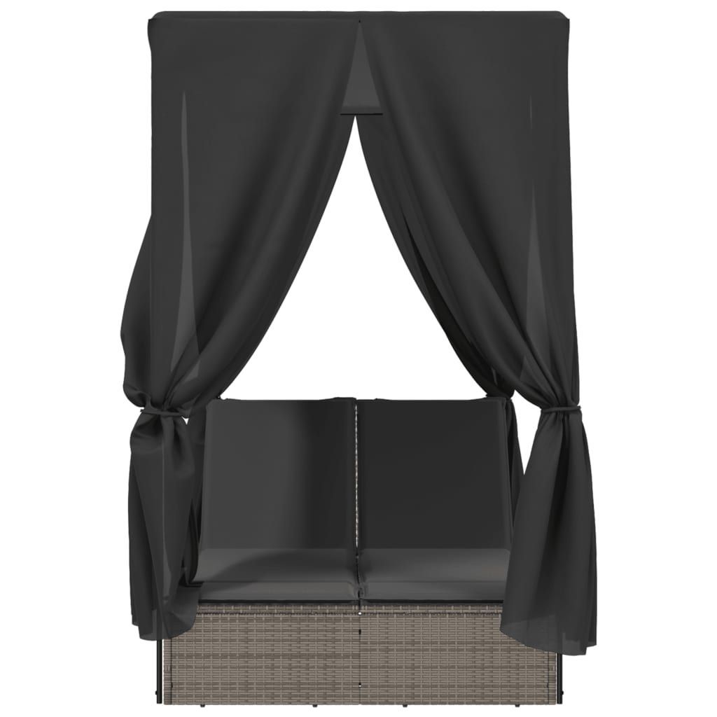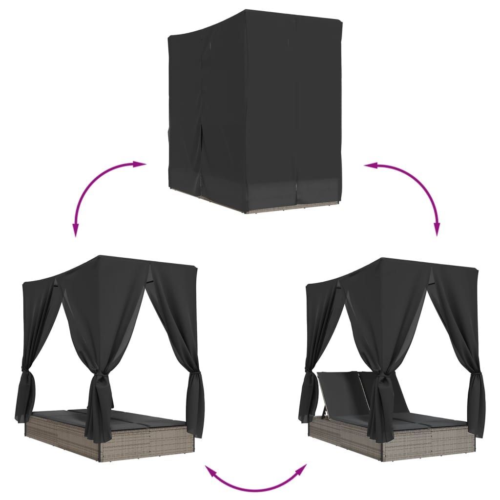 vidaXL vidaXL Doppel-Sonnenliege mit Dach und Vorhängen Grau Poly Rattan
