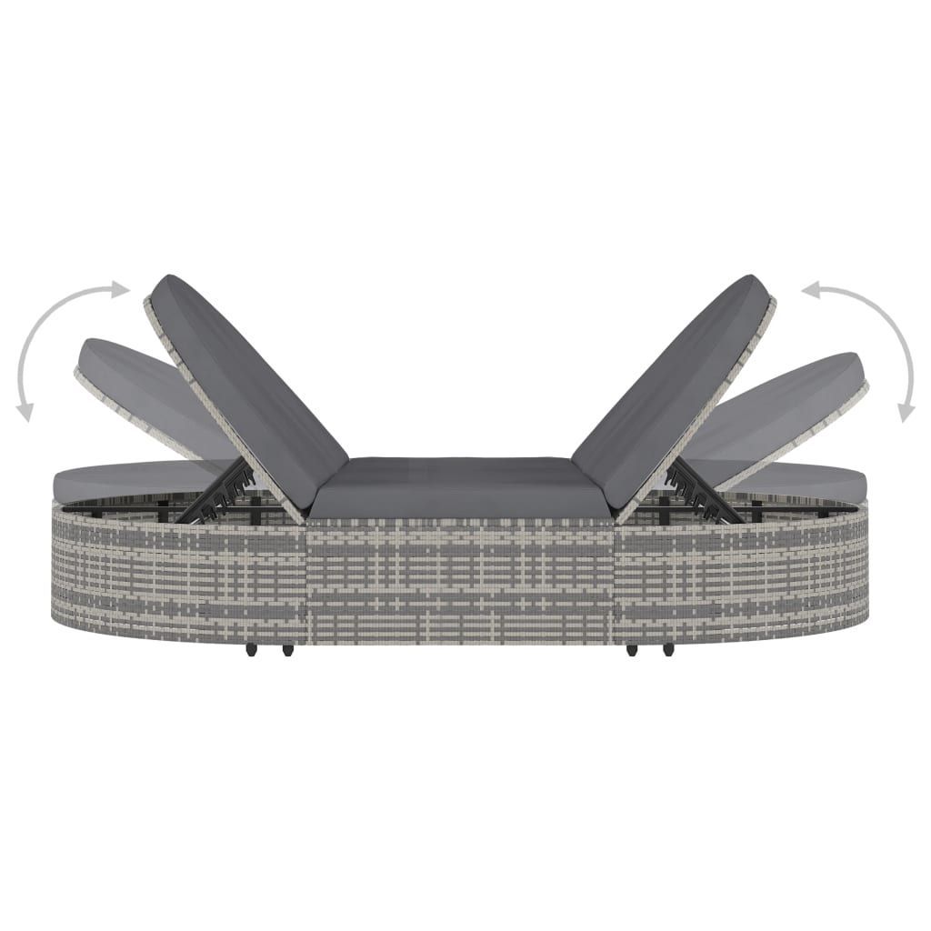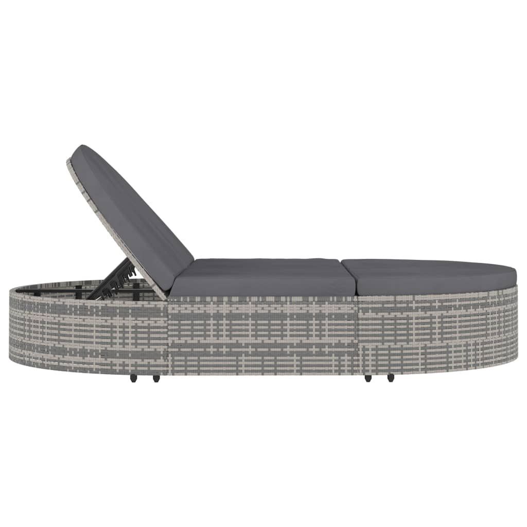 vidaXL vidaXL Doppel-Sonnenliege mit Kissen Poly Rattan Grau