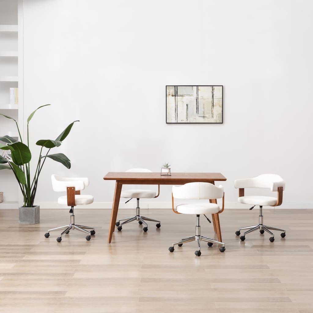 vidaXL vidaXL Drehbare Esszimmerstühle 4 Stk. Weiß Bugholz und Kunstleder