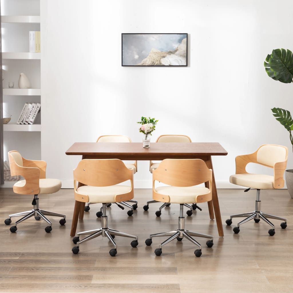 vidaXL vidaXL Drehbare Esszimmerstühle 6 Stk. Creme Bugholz und Kunstleder