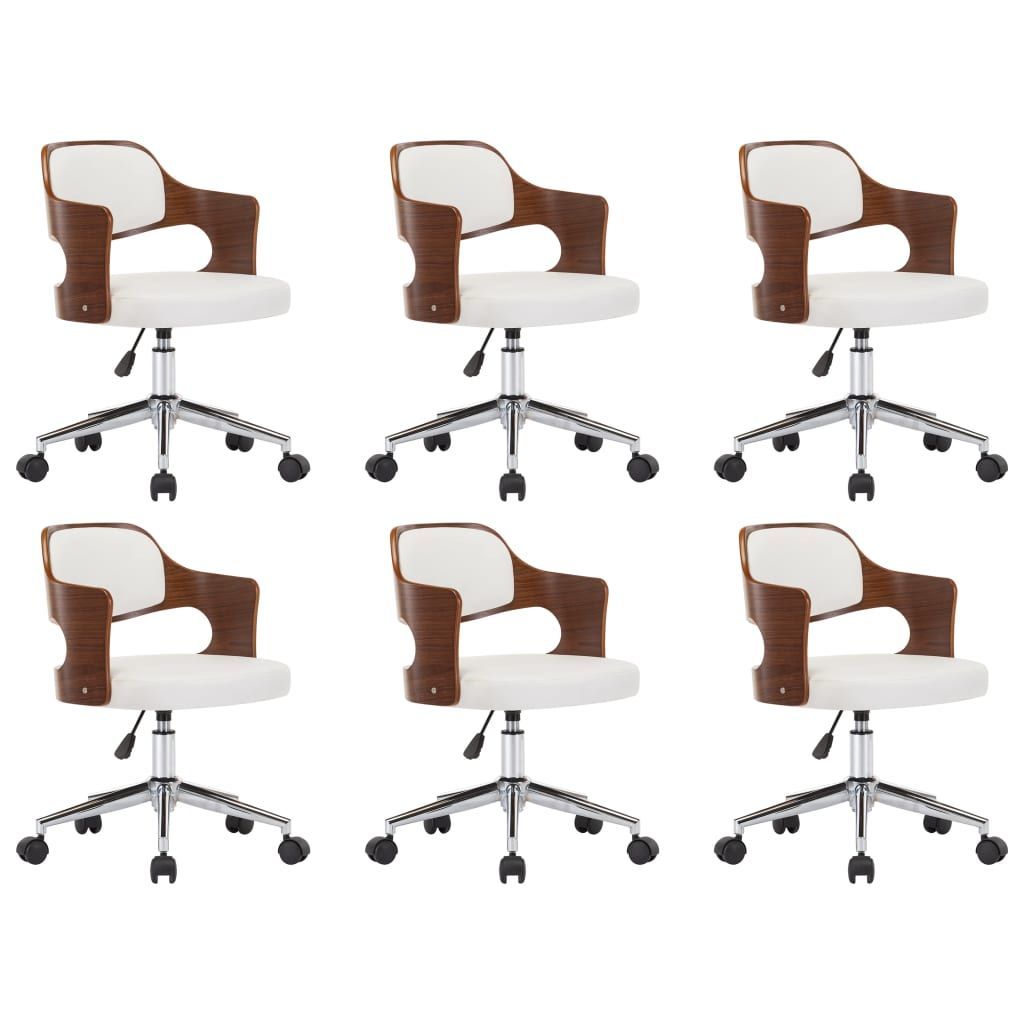 vidaXL vidaXL Drehbare Esszimmerstühle 6 Stk. Weiß Bugholz und Kunstleder