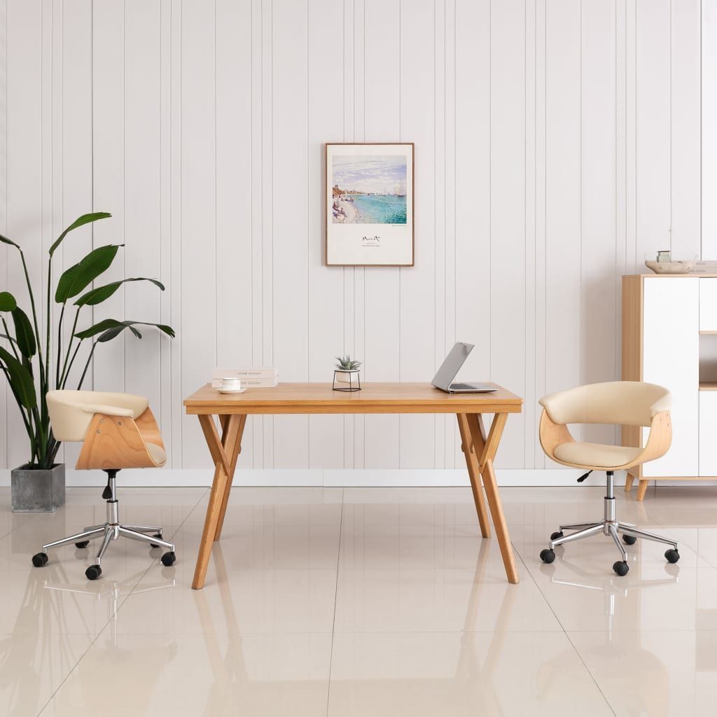 vidaXL vidaXL Drehbarer Bürostuhl Creme Bugholz und Kunstleder