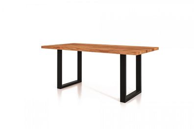 • Esstisch Leeds aus Wildeiche massiv 90x150x75 mit Metallfußgestell Schwarz