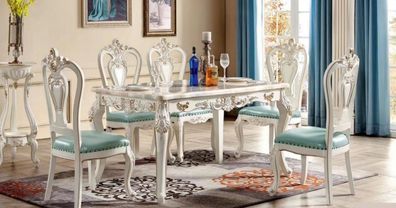 Elegante Esszimmergarnitur Massivholz Esstisch 6x Lederstühle -7tlg
