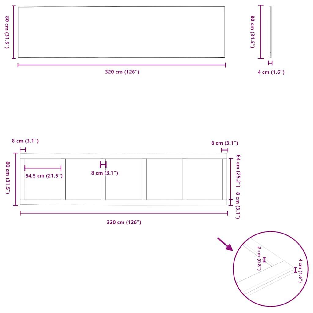 vidaXL vidaXL Esstisch mit Baumkanten 320x80x74 cm Massivholz Eiche