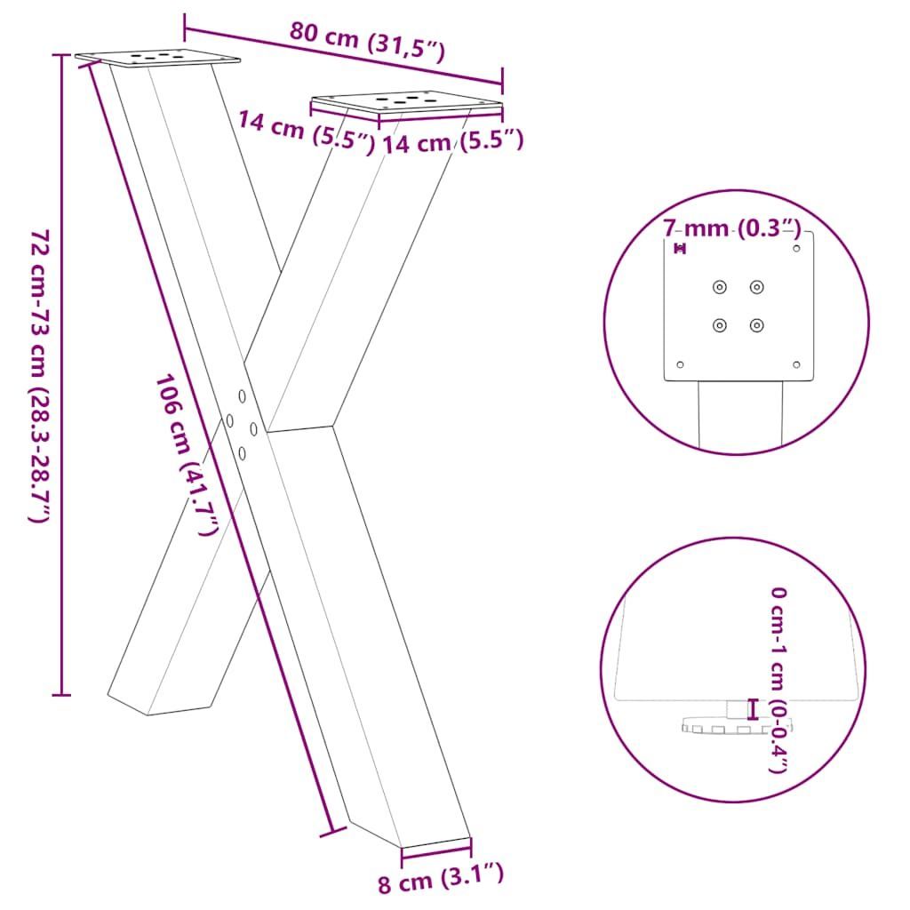 vidaXL vidaXL Esstischbeine X-Form 2 Stk. Schwarz 80x(72-73) cm Stahl