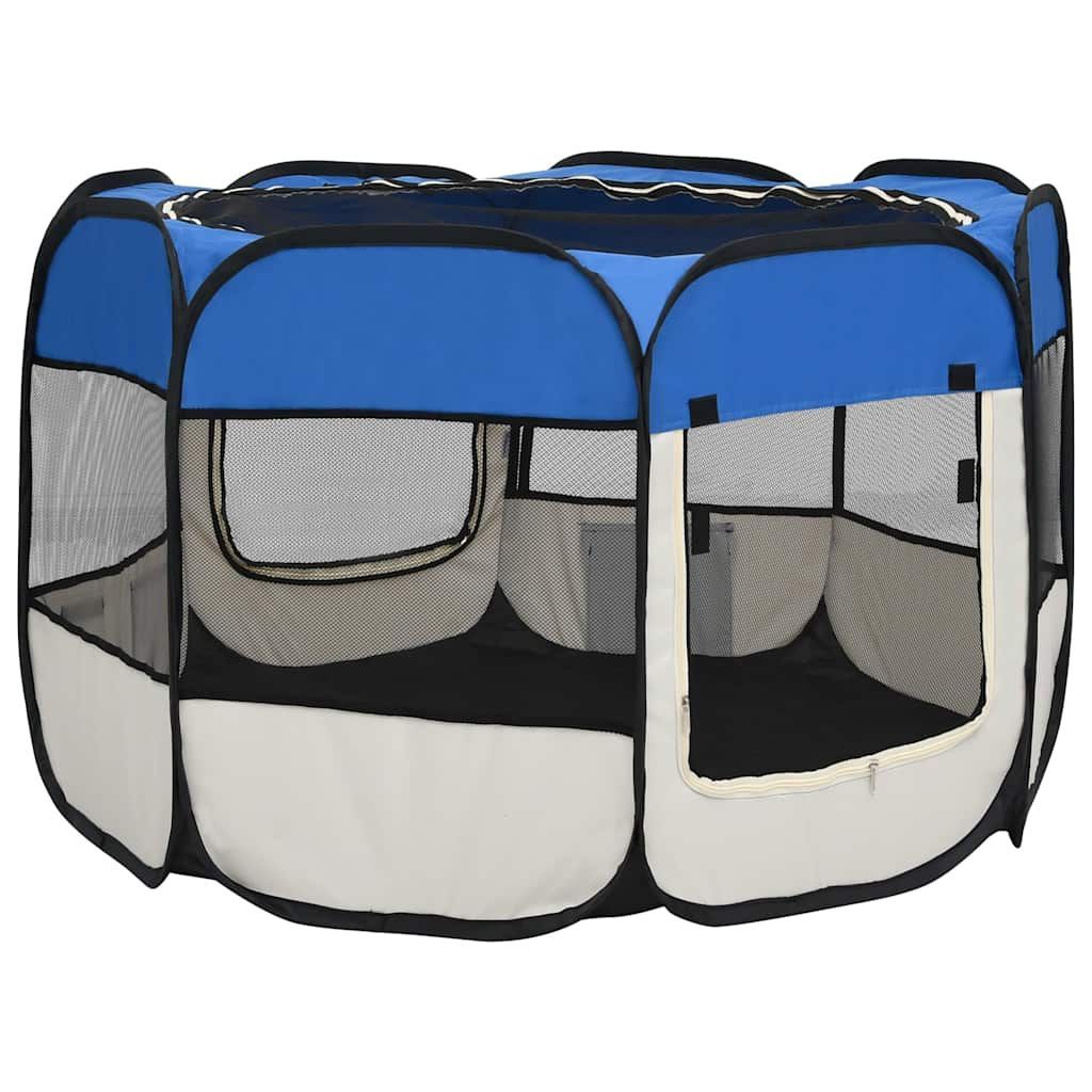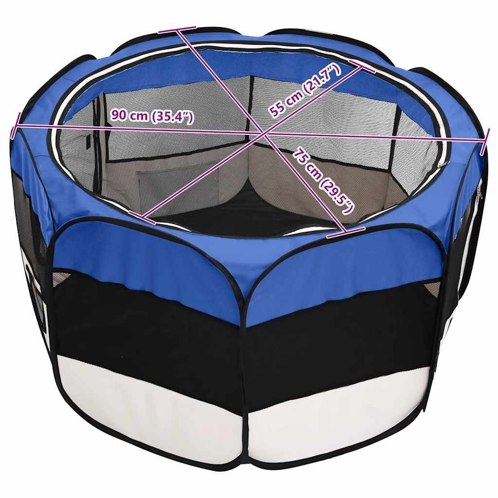 vidaXL vidaXL Faltbarer Welpenlaufstall mit Tragetasche Blau 90x90x58 cm
