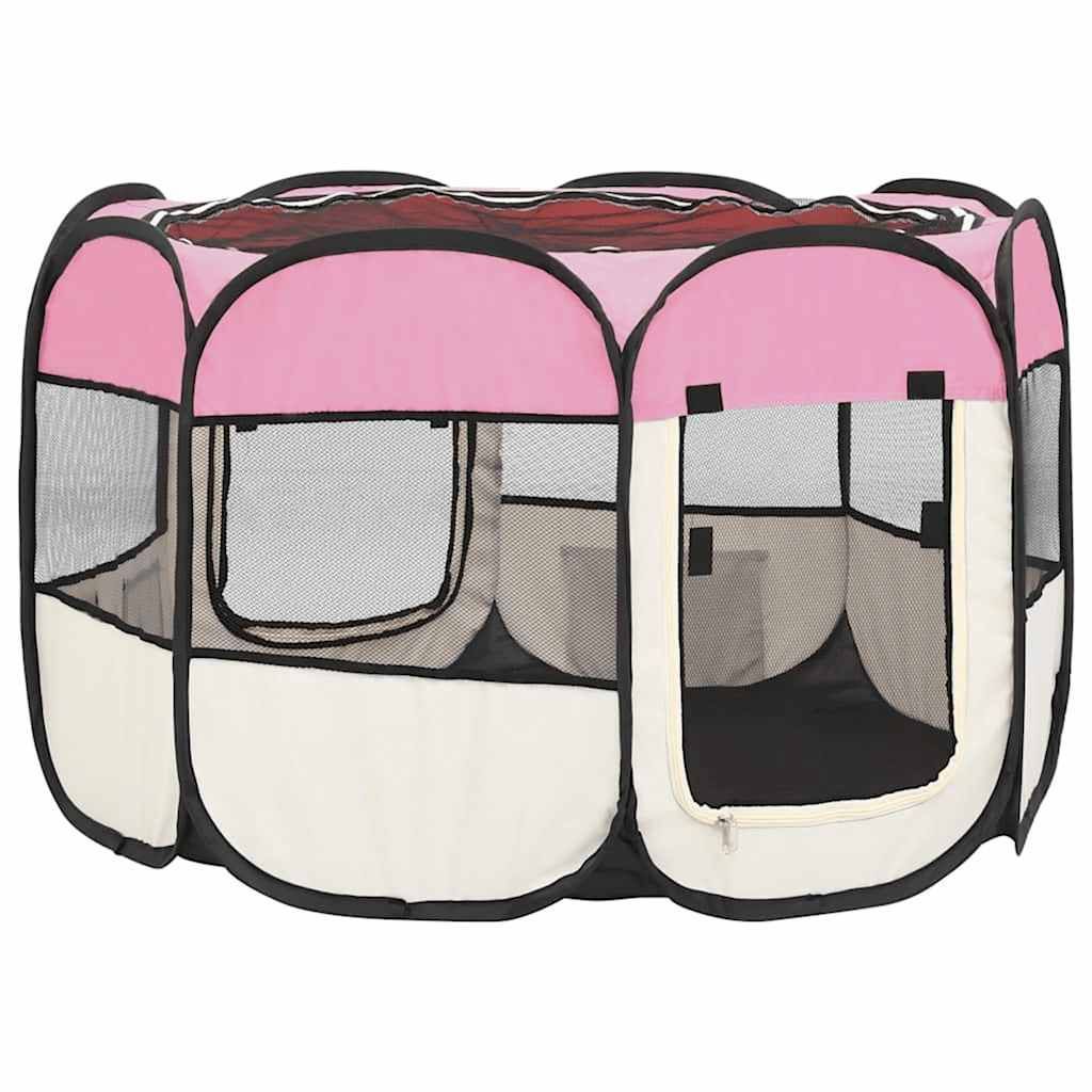 vidaXL vidaXL Faltbarer Welpenlaufstall mit Tragetasche Rosa 90x90x58 cm