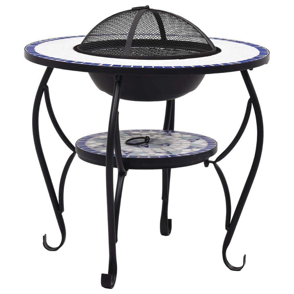 vidaXL vidaXL Feuertisch Mosaik Keramik Blau und Weiß 68 cm