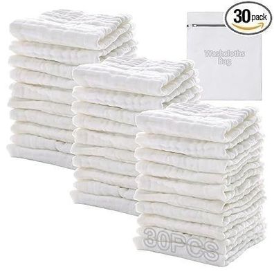 • Koo-dib Musselin Baby Spucktécher 30er Set 25x25 cm inkl. Wäschesack - Unisex