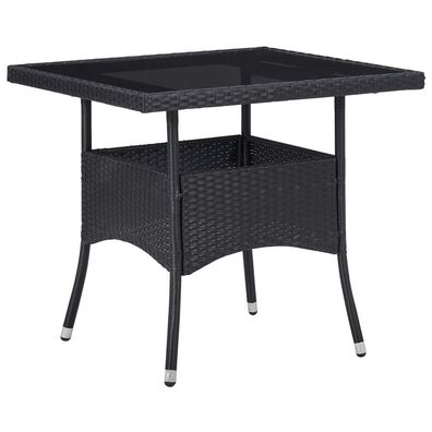 vidaXL Garten-Esstisch Schwarz Poly Rattan und Glas