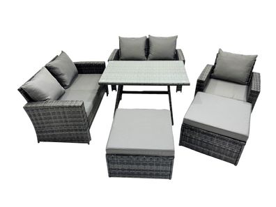 • Fimous 7-Sitzer Polyrattan Garten Esstisch Set Gartenmöbel Sofa mit Esstisch