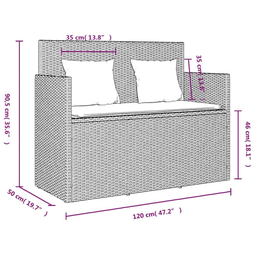 • vidaXL Gartenbank mit Stauraum und Kissen Grau Poly Rattan