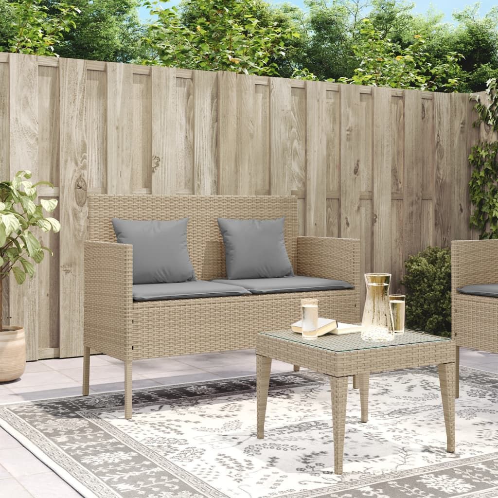 vidaXL vidaXL Gartenbank mit Kissen Beige Poly Rattan