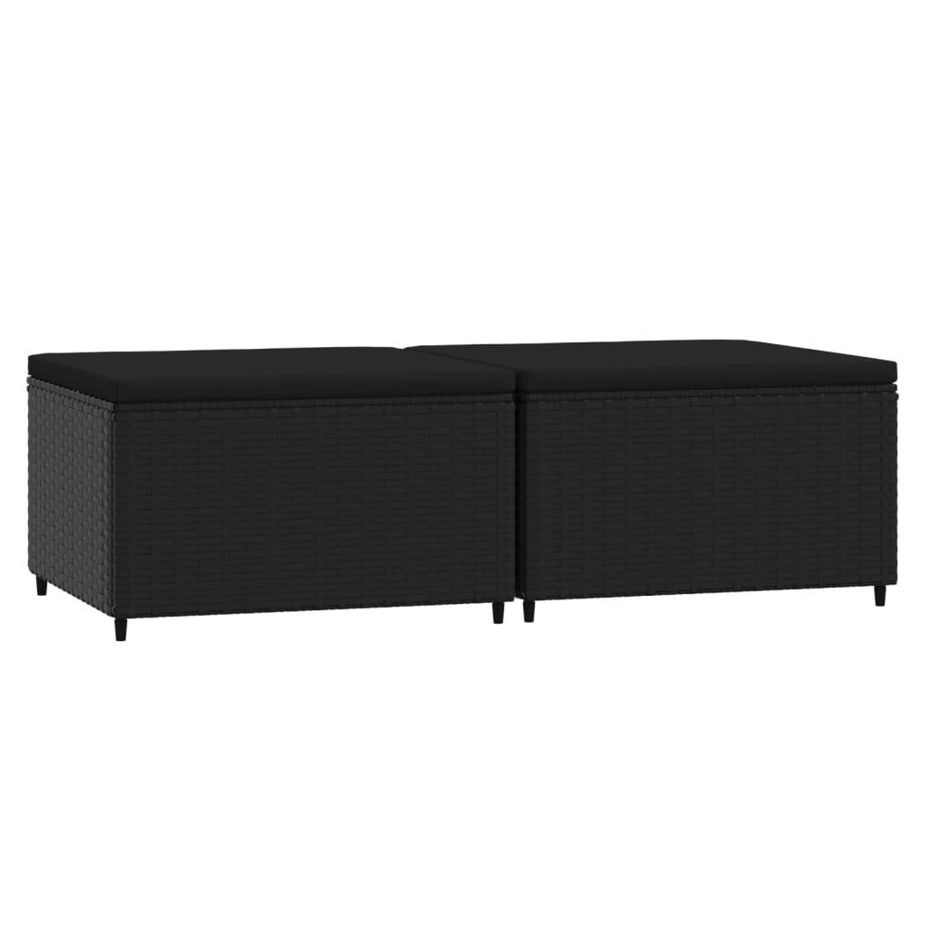 vidaXL vidaXL Gartenhocker mit Kissen 2 Stk. Schwarz Poly Rattan