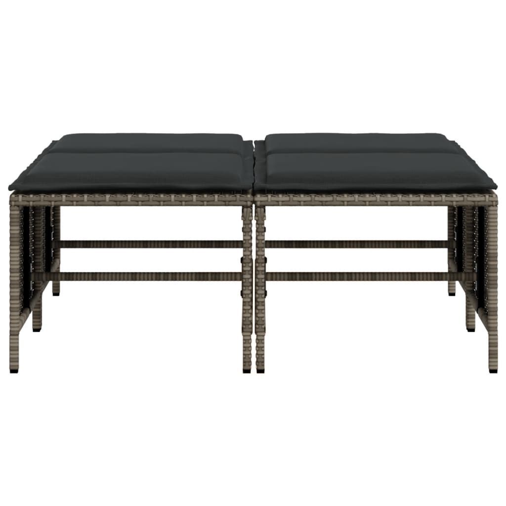 vidaXL vidaXL Gartenhocker mit Kissen 4 Stk. Grau Poly Rattan