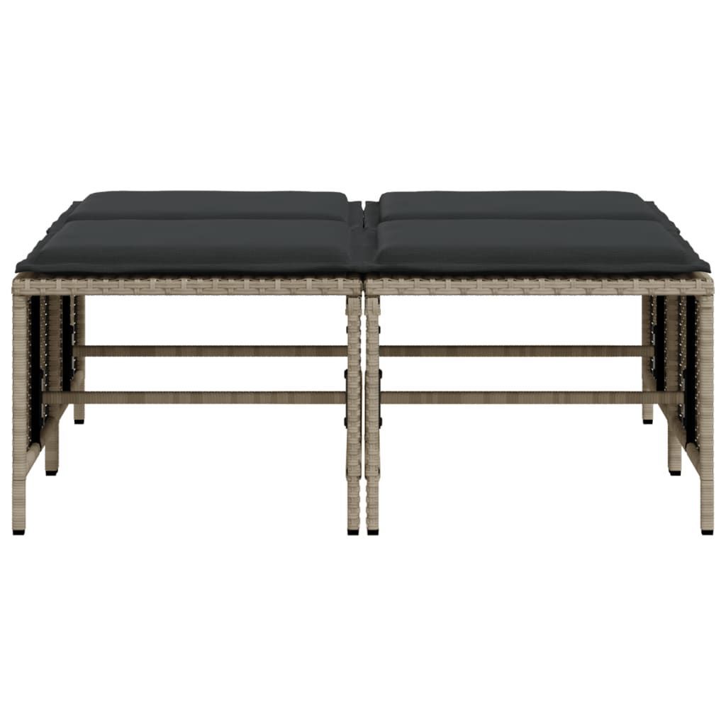 vidaXL vidaXL Gartenhocker mit Kissen 4 Stk. Hellgrau Poly Rattan