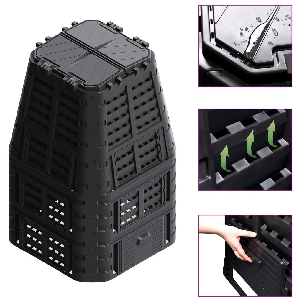 • vidaXL Gartenkomposter Schwarz 800 L
