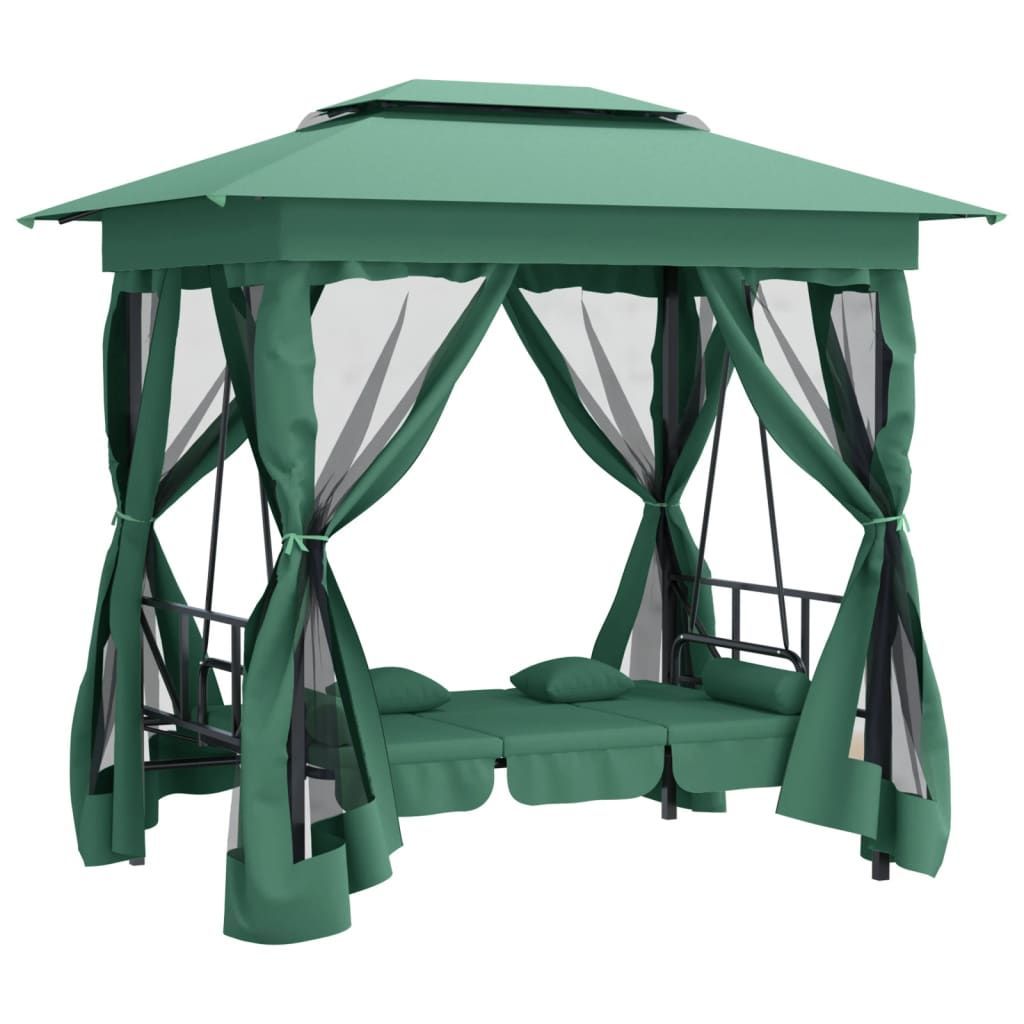 vidaXL vidaXL Gartenpavillon mit Hollywoodschaukel Grün Stoff & Stahl