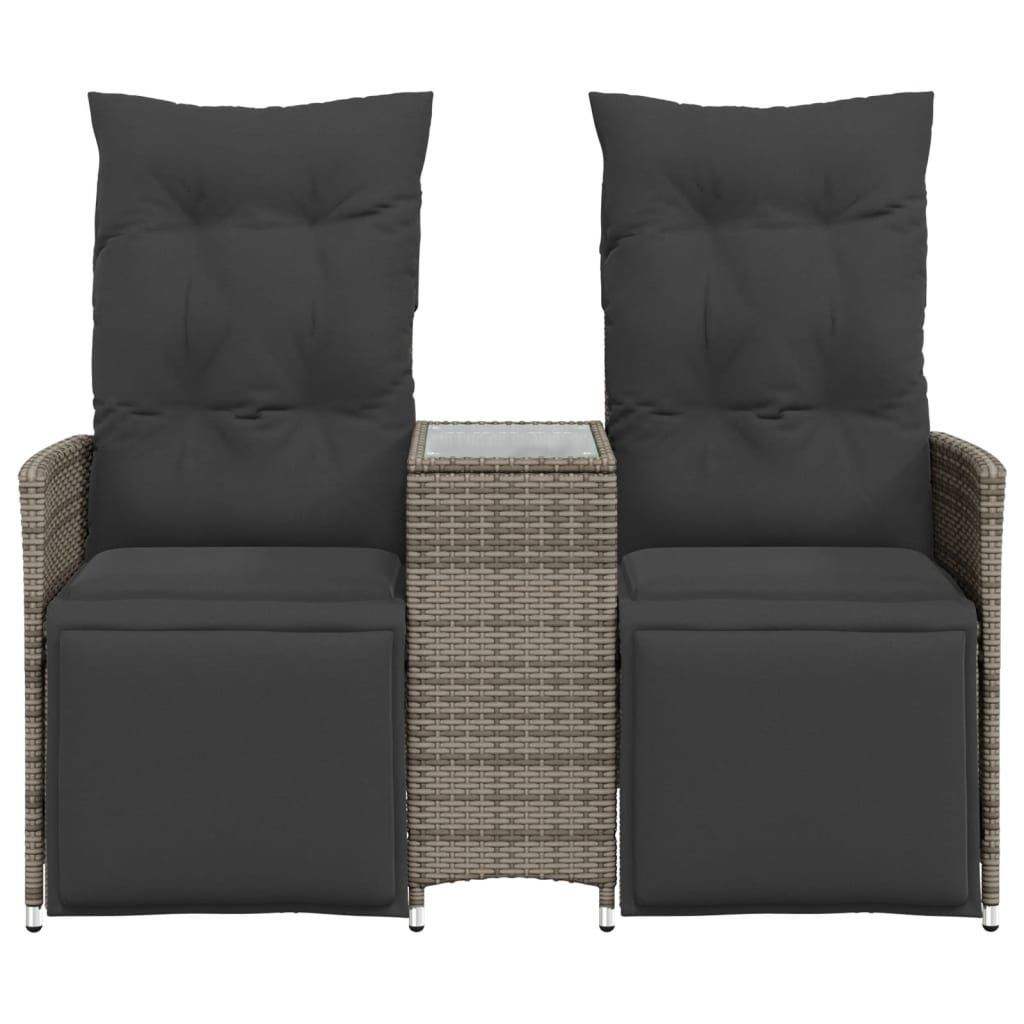 vidaXL vidaXL Gartensofa 2-Sitzer Verstellbar mit Tisch Grau Poly Rattan