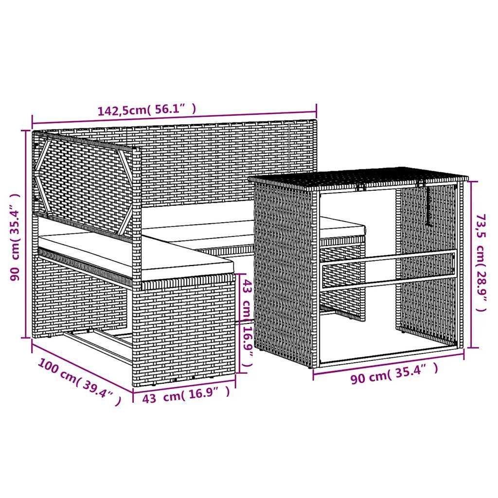 vidaXL vidaXL Gartensofa in L-Form mit Tisch und Kissen Braun Poly Rattan
