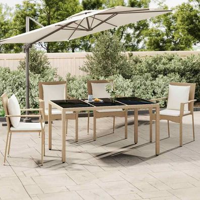 vidaXL vidaXL Gartentisch mit Glasplatte Beige Poly Rattan