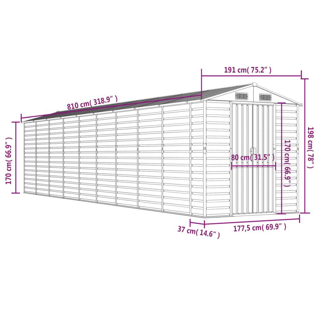 vidaXL vidaXL Gerätehaus Anthrazit 191x810x198 cm Verzinkter Stahl