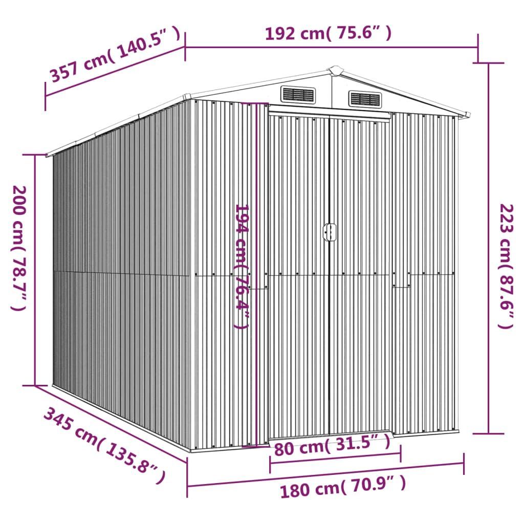 vidaXL vidaXL Geräteschuppen Grün 192x357x223 cm Verzinkter Stahl