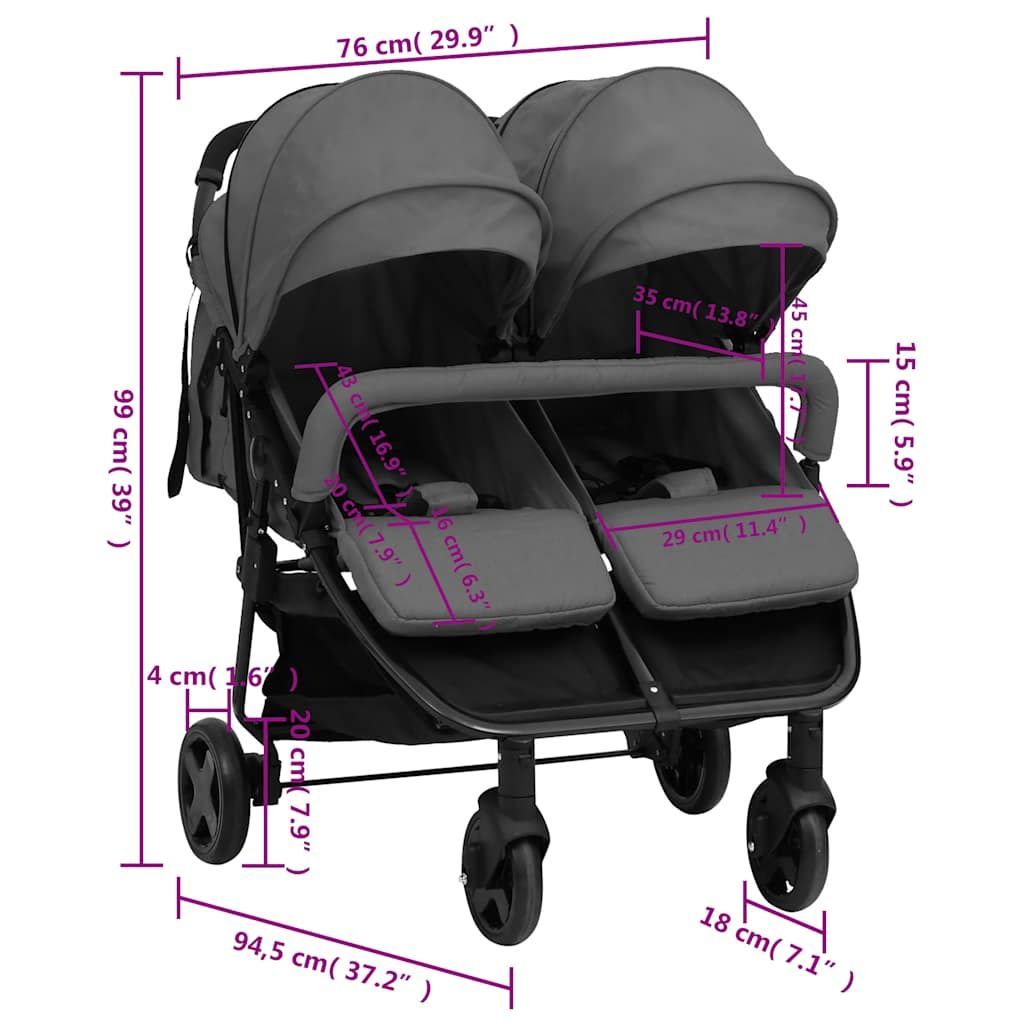 vidaXL vidaXL Geschwisterwagen Dunkelgrau und Schwarz Stahl