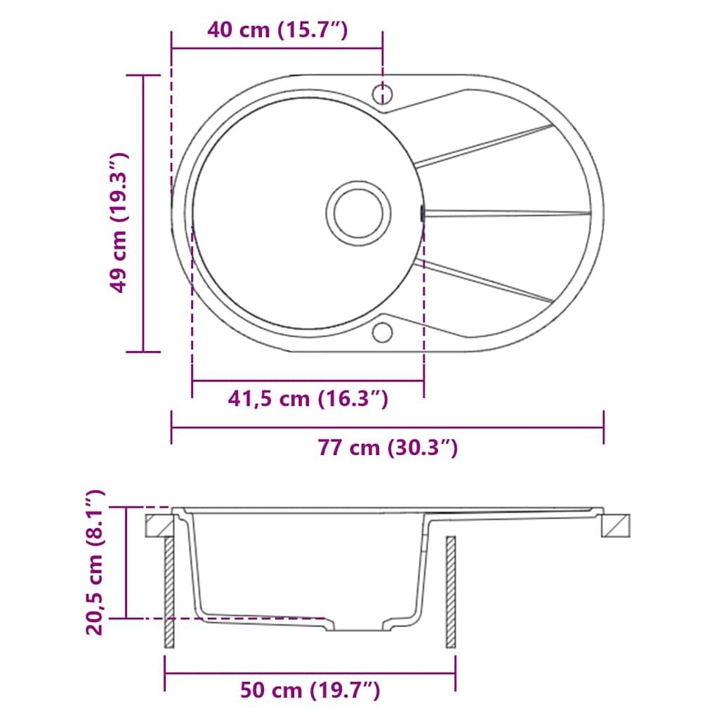 vidaXL vidaXL Granit Küchenspüle Einzelwaschbecken Oval Schwarz