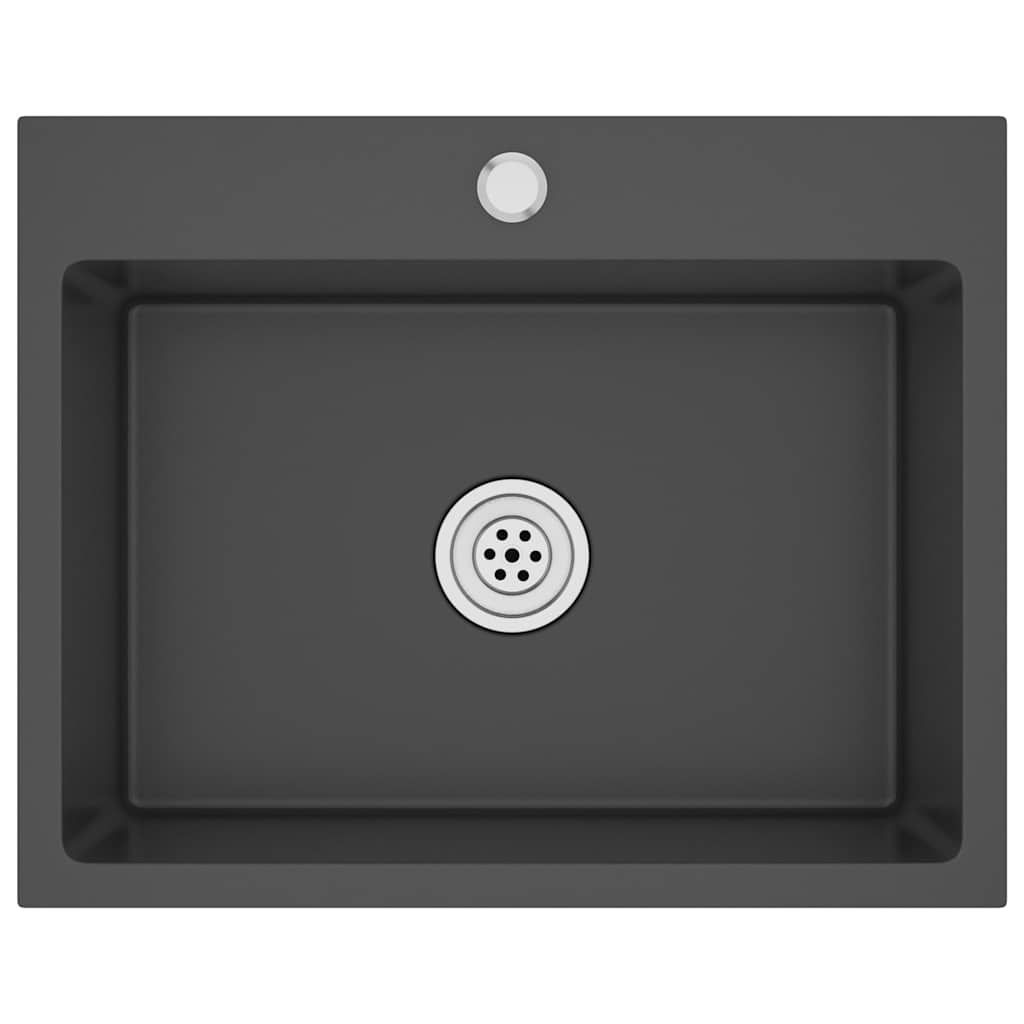 vidaXL Handgemachte Einbauspüle Schwarz Edelstahl
