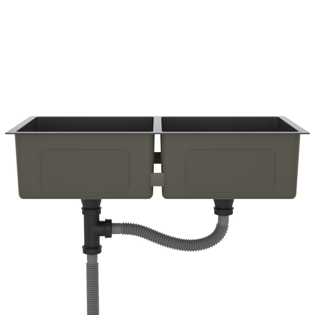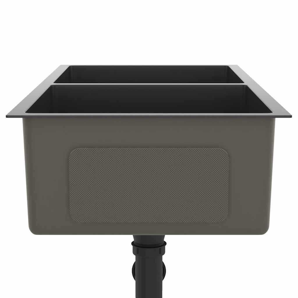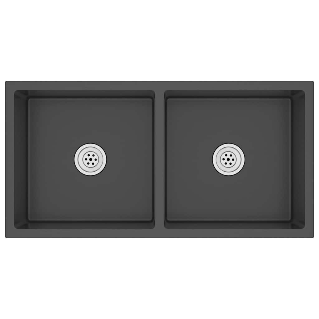 vidaXL vidaXL Handgemachte Einbauspüle Schwarz Edelstahl