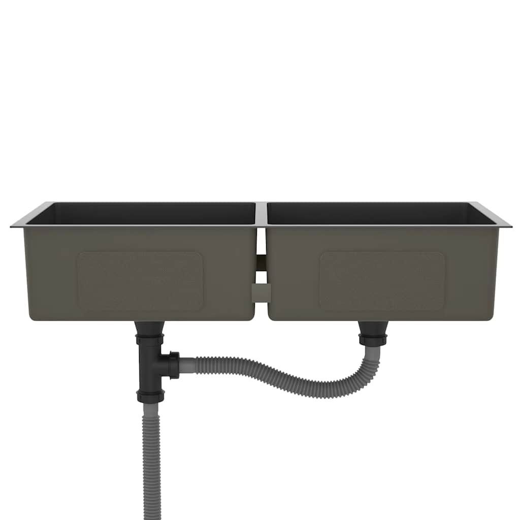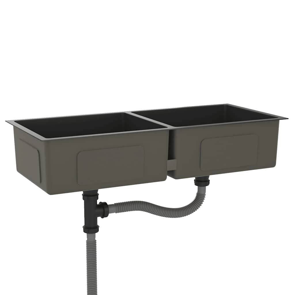 vidaXL vidaXL Handgemachte Einbauspüle Schwarz Edelstahl